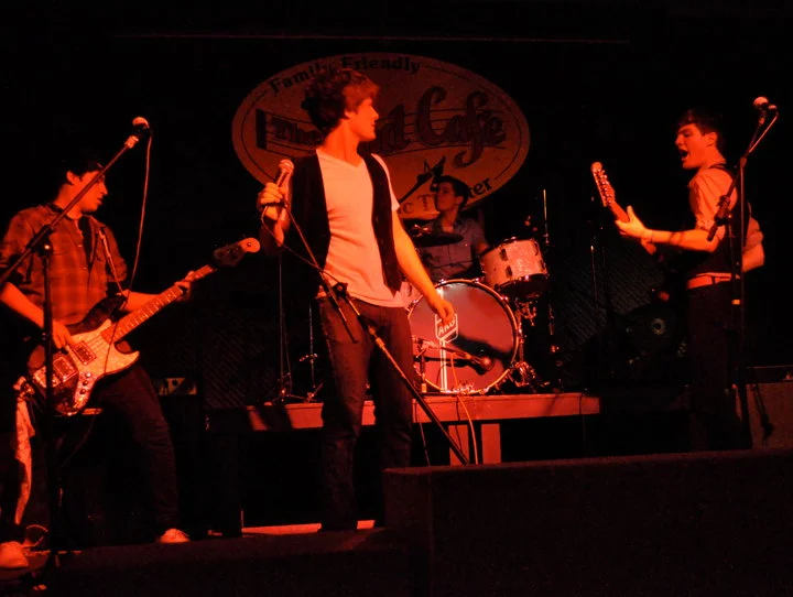 From day one, the group was electrifying. They quickly booked gigs, wrote songs, and recorded and released music. Their strong suit was their live show, boasting over the top showmanship and high energy antics. Within a year and a half they had won a New England wide battle of the bands, played local festivals, and been offered a chance to record a full length in LA. However in 2010, Gray was in Boston, Kaleb in NYC, and Adam and Ryan were still in NH. Because of the distance, gigs had slowed down, and so had recording and writing. At that point, Gray had taken the role of the singer and guitarist at most gigs. So, the group recorded and released their first official EP "in Flash We Trust" and then quietly disbanded.